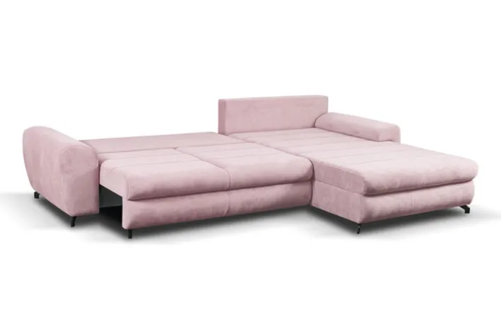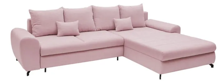 Mit dem rosefarbigen Ecksofa mit einer Größe von 320 x 214 cm lässt sich das Wohnzimmer mit einer komfortablen Sitzgelegenheit bereichern, die mit ihrer lieblichen Farbe zudem für ein romantisches Ambiente sorgt.