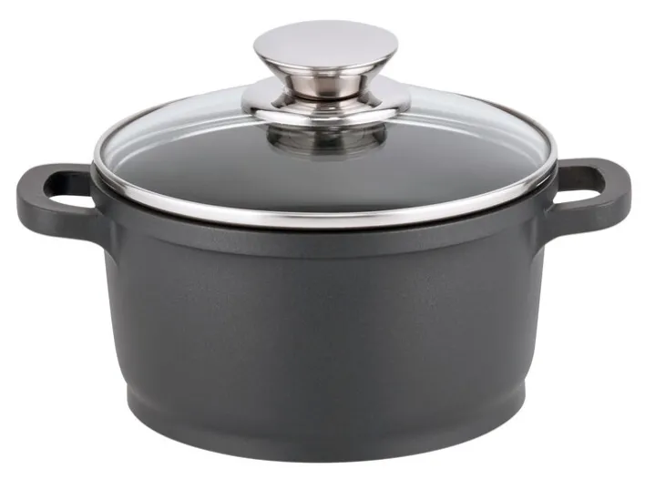 Der ELO Kochtopf mit Glasdecke ALUCAST besteht aus einem Topf aus Aluminiumguss, der mit zwei Griffen versehen ist, und aus einem stoßfesten Glasdeckel. Der Topf präsentiert sich in klassischem Schwarz und fügt sich so hervorragend in verschiedene Einrichtungskonzepte. Darüber hinaus ist er spülmaschinengeeignet. Der ELO Kochtopf mit Glasdecke ALUCAST eignet sich aufgrund seiner hochwertigen Antihaftversiegelung vor allem für das fettfreie oder fettarme Garen. Darüber hinaus ermöglicht der Aluminiumguss eine hervorragende Wärmeleitung, sodass der Topf schnell heiß wird. Das Material lässt sich schnell und einfach reinigen und ist außerdem für den Backofen geeignet. Der Topf hält Temperaturen von bis 240° C aus, während der Glasdeckel immerhin 180° C standhält. Doch natürlich können Sie den Topf auch ganz normal auf dem Herd nutzen. Er ist für alle Herdarten, auch für Induktionsherde, geeignet.