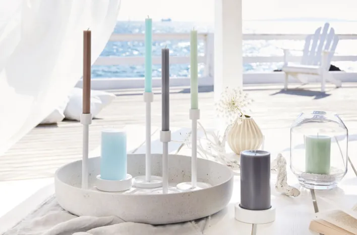 Der formschöne Kerzenteller ist aus robustem Polyresin hergestellt. Das aufwendig verarbeitete Kunstharz ist gefärbt und die glatten Oberflächen sind pflegeleicht. Der Kerzenteller ist für Dekorationen im Innenbereich geeignet.