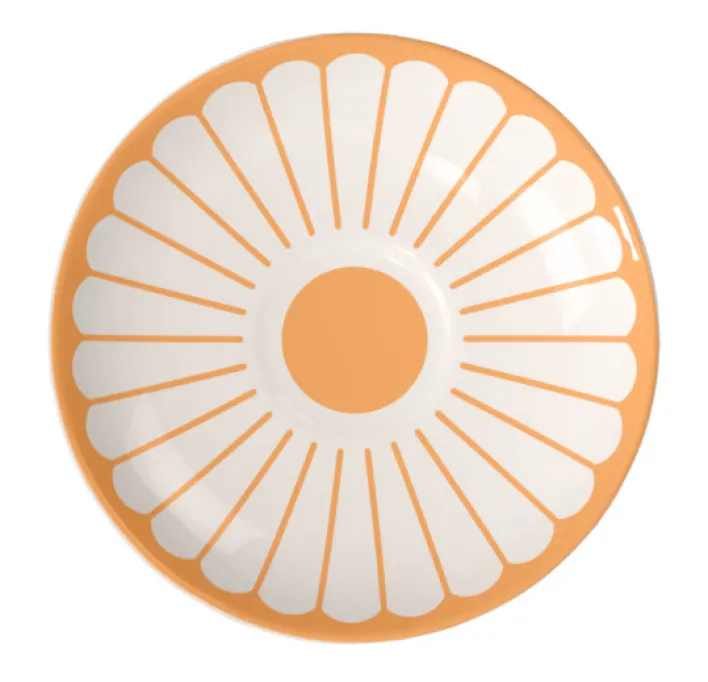 Die Untertasse aus der Serie FLEUR SOLEIL besticht durch ihr auffälliges Design und ihre funktionalen Eigenschaften. Mit einem Durchmesser von 11,7 cm und einer Höhe von 2 cm ist sie ideal für den täglichen Gebrauch geeignet. Die Hauptfarbe Gelb, kombiniert mit Weiß, verleiht der Untertasse ein frisches und modernes Aussehen. Das Muster erinnert an Sonnenstrahlen, was dem Geschirr eine fröhliche und einladende Note verleiht.