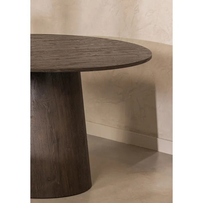 Als modernes Möbelstück kommt dieser Tisch besonders für den Wohn- und Essbereich infrage. Der stilvolle Esstisch MAAN ist mit einem Säulengestell aus einer Holznachbildung ausgestattet. Die braune Tischplatte besteht ebenfalls aus einer Holznachbildung und hat einen Durchmesser von 120 cm. Um den 30 Kilogramm schweren Tisch finden dazu passende Stühle ihren Platz. Das Produkt aus China besticht durch das runde Design und die Farbauswahl. Es kann so eigene Akzente im Wohn- und Essbereich setzen.