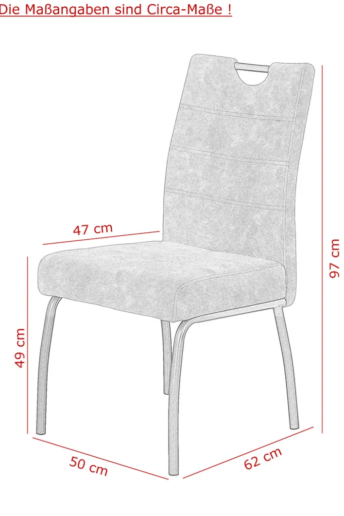 Der Esszimmerstuhl hat eine Sitzhöhe von 49 cm und eine Sitztiefe von 47 cm. Die bequeme Rückenlehne weist eine Höhe von 48 cm vor.