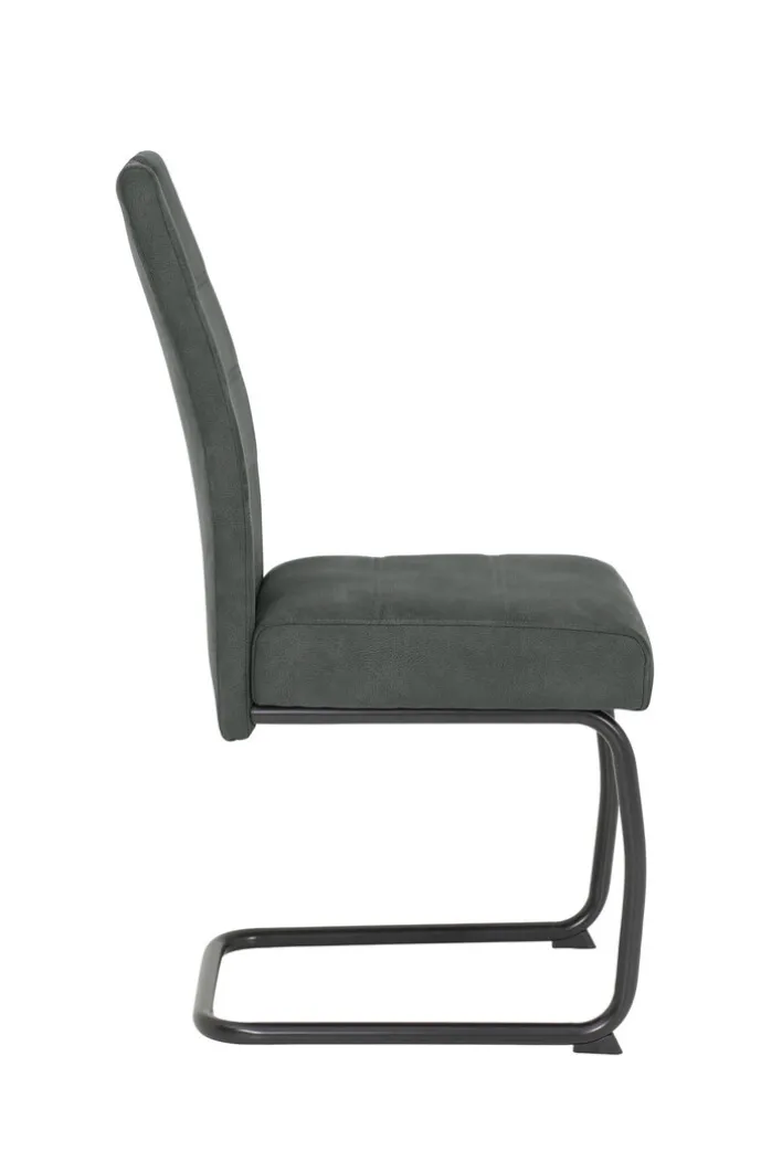 Der Stuhl besticht durch seine graue Vintage-Optik, die durch den Einsatz von hochwertigem Mikrofaser-Textil erreicht wird. Das Material besteht zu 100 % aus Polyester, was für Langlebigkeit und einfache Pflege sorgt. Das pulverbeschichtete Metallgestell in Schwarz verleiht dem Stuhl eine matte Optik und sorgt für Stabilität. Die Polsterung mit Federkern bietet zusätzlichen Sitzkomfort. Der integrierte Griff erleichtert das Umstellen des Stuhls, was besonders in dynamischen Wohnumgebungen von Vorteil ist.