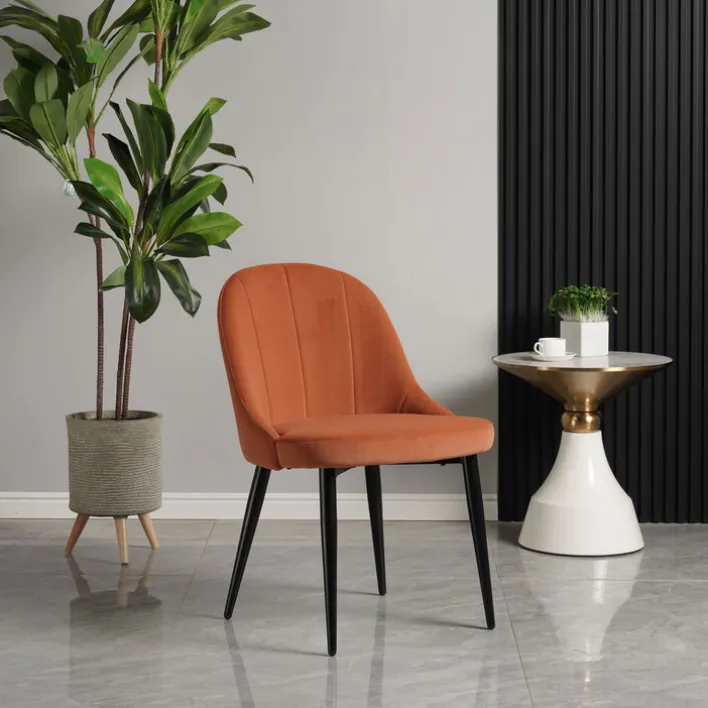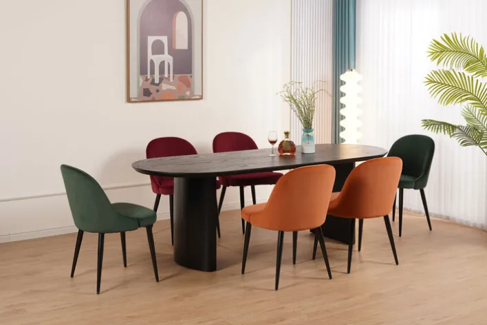 Jeder der beiden Esszimmerstühle aus dem 2er Set überzeugt im Alltag mit einer maximalen Belastbarkeit von 120 Kilogramm. Das Gestell aus vier Füßen besteht aus pulverbeschichtetem Metall in der Farbe Schwarz. Dieses Vierfußgestell ist genauso leicht zu pflegen wie der Bezug aus der Synthetikfaser Polyester. Die weiche Sitzfläche misst 52 Zentimeter Breite. Die hohe Lehne ist mit vertikalen Nähte verziert.