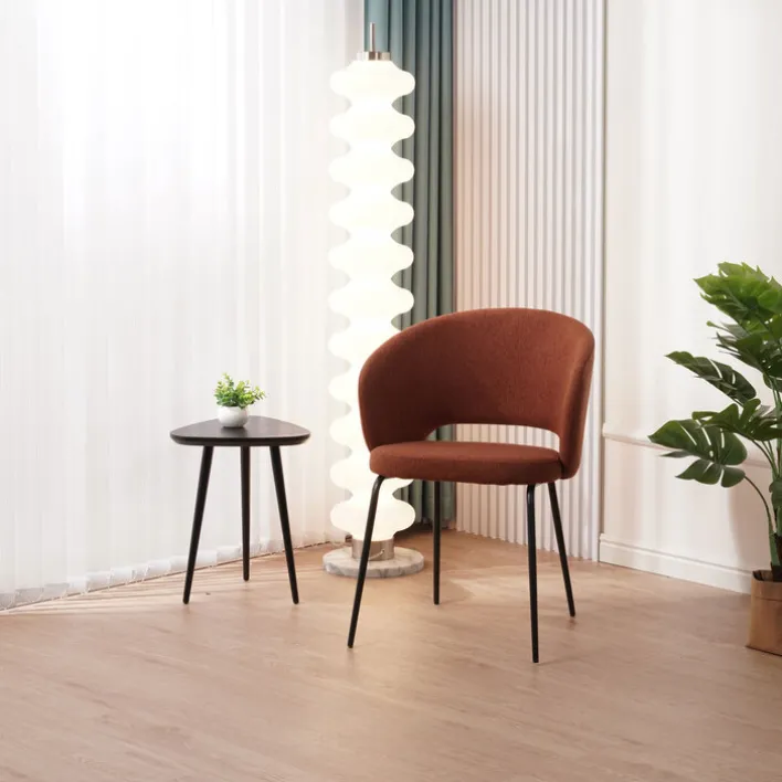 Der attraktive Esszimmerstuhl VINCENT bringt mit seinem beschwingten Design einen farbenfrohen Akzent ins Speisezimmer oder die Essecke. Der orangefarbige Textilbezug aus Synthetikfaser besticht durch seine Funktionalität und Haltbarkeit. Die schwarze Oberfläche des metallenen Fußgestells ist pulverbeschichtet, dadurch wird sie optisch aufgewertet und sicherer gegen Kratzer.