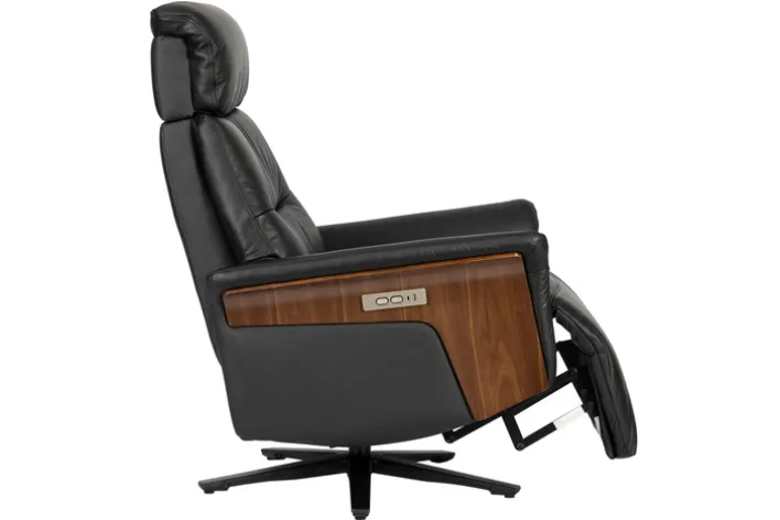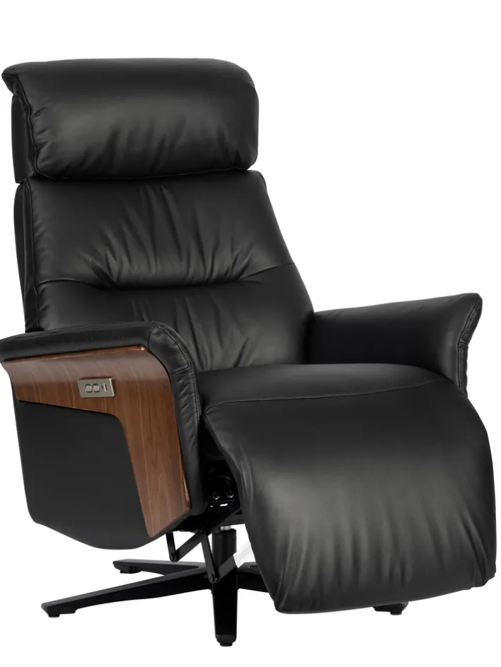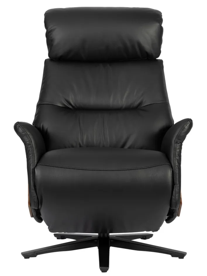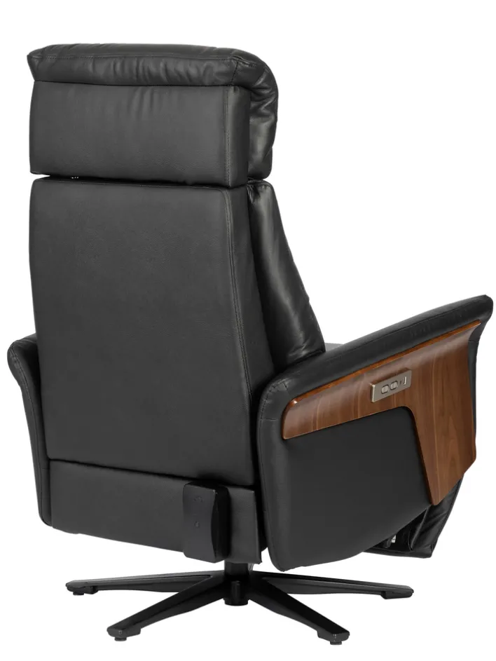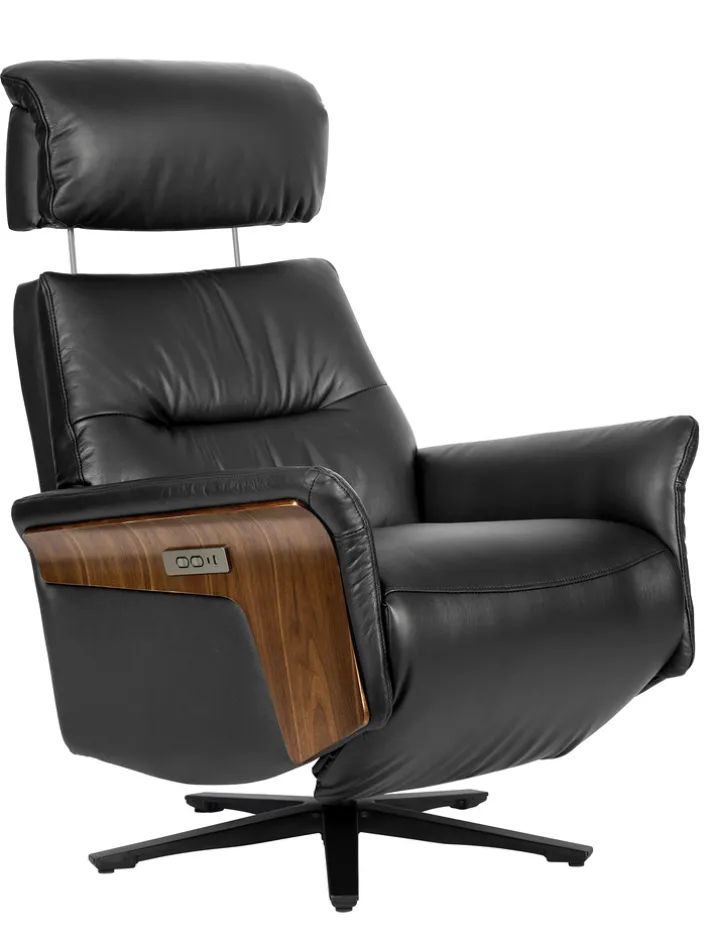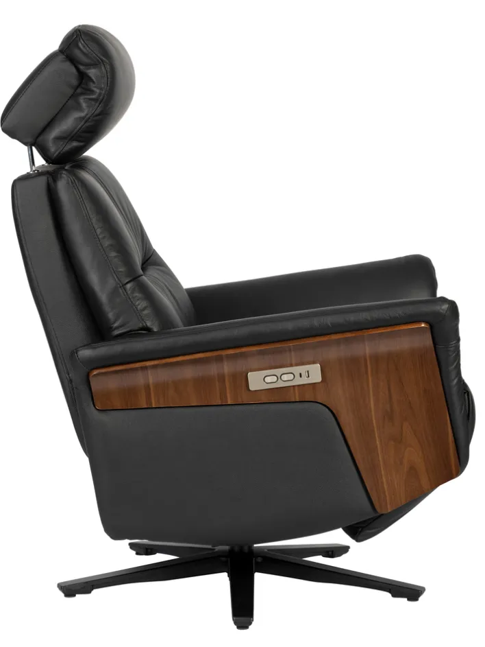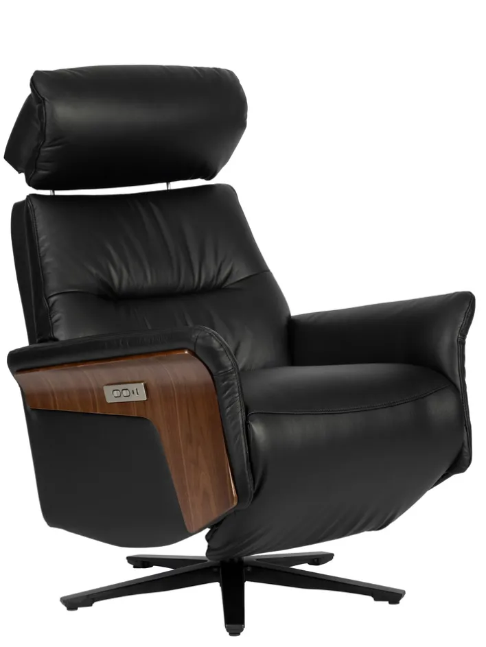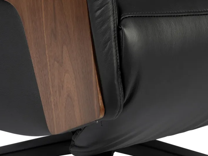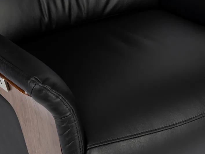 Der Fernsehsessel TERAMO vereint Komfort und Stil in einem eleganten Design. Mit einer Breite von 75 cm, einer Höhe von 108 cm und einer Tiefe von 87 cm bietet er großzügigen Platz zum Entspannen. Der Sessel ist in einem edlen Schwarz gehalten, das durch dekorative Walnussakzente an den Seiten ergänzt wird. Diese Kombination aus Leder und Holznachbildung verleiht dem Sessel eine luxuriöse Ausstrahlung, die sich nahtlos in verschiedene Wohnstile einfügt.