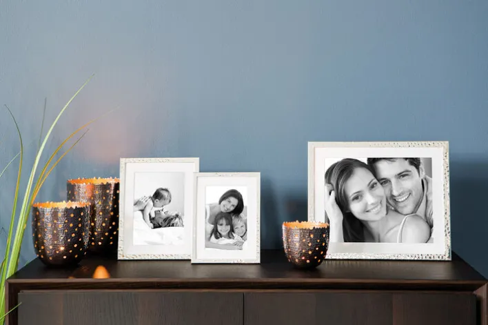 Anlaufgeschützt und versilbert glänzt der schmale Bilderrahmen MILAN von Fink und rückt Ihre Fotos im Format 10 cm x 15 cm in genau das richtige Licht.