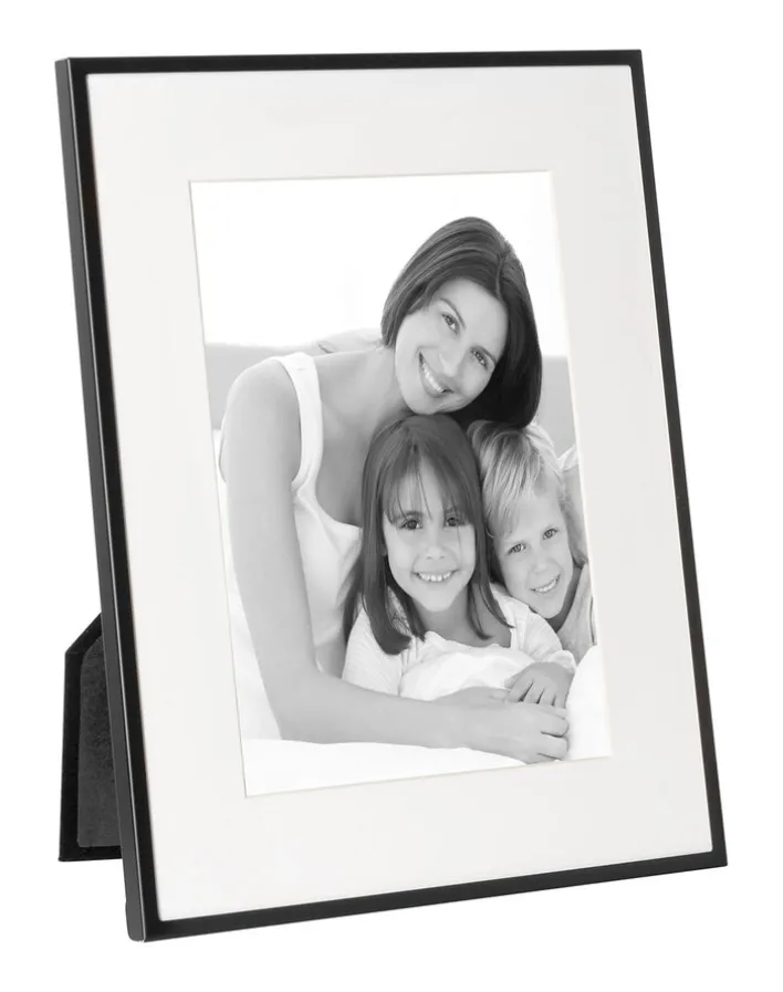 Die Leisten des Bilderrahmens NIGRA sind aus Aluminium hergestellt. Die Oberflächen des Leichtmetalls sind lackiert und dadurch äußerst strapazierfähig. Die Rückwand des Rahmens ist mit mehreren Metallklammern befestigt. Dadurch sitzen die eingelegten Bilder sicher hinter der Glasplatte und sind vor Verschmutzungen geschützt. Der Bilderrahmen eignet sich für Fotografien und Bilder im Format 13 x 18 cm.