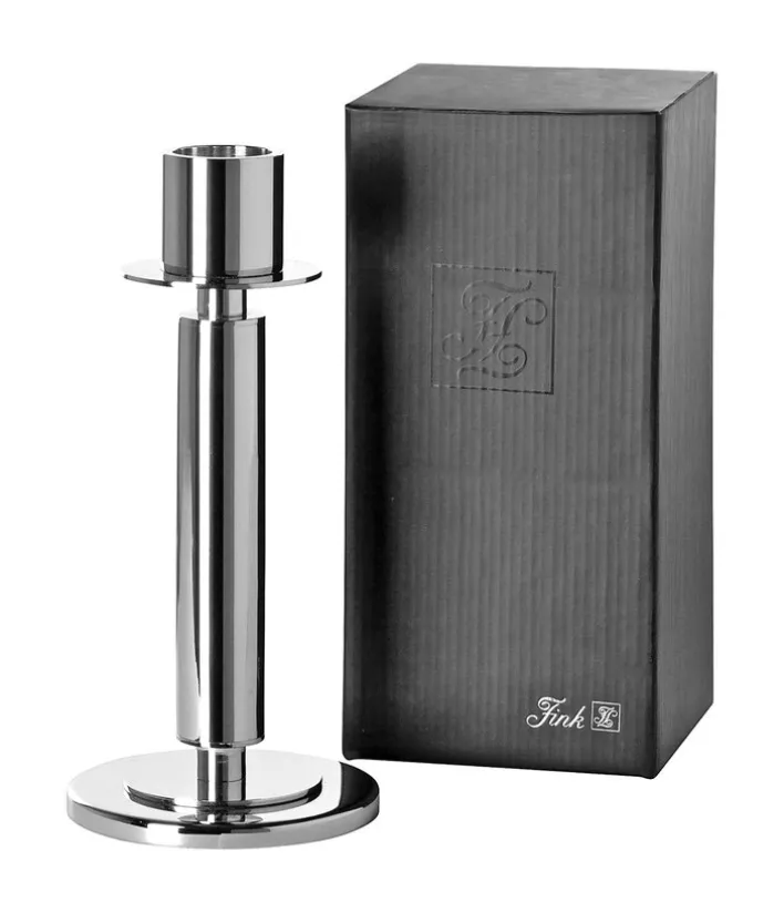 Der Fink Leuchter TALIS in Hochglanzoptik hat eine Höhe von 20 cm und eignet sich für Stabkerzen. Hergestellt aus vernickeltem Metall, ist der Kerzenhalter robust und strapazierfähig. Der Leuchterfuß mit einem Durchmesser von 9,5 cm verleiht ihm zudem einen hervorragenden Stand. Mit seinem modernen, minimalistischen Design harmoniert der Kerzenleuchter mit jeder Kerzenfarbe kombinieren. Zudem sorgt er mit sanftem Kerzenschein zu jeder Jahreszeit für ein gemütliches Ambiente.