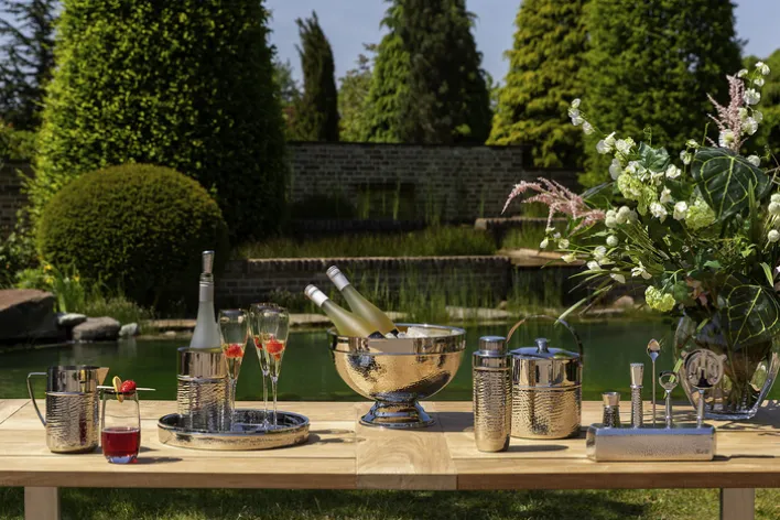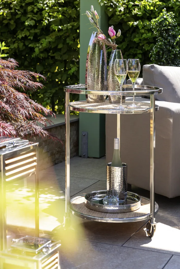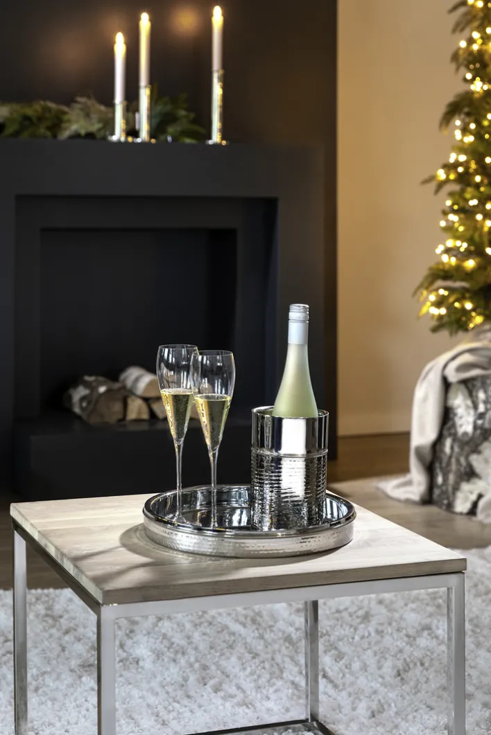Das silberfarbige Tablett NASSAU von Fink ist aufgrund seiner gehämmerten Oberfläche aus Edelstahl ein echter Hingucker – und zugleich noch unglaublich praktisch. Mit einem Durchmesser von 32 cm bietet das Tablett genügend Platz um für eine bis zwei Personen Speisen, Getränke und Snacks stillvoll zu präsentieren.