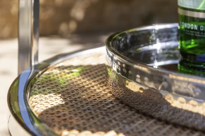 Ideal ist das Fink Tablett NASSAU mit seiner silberfarbigen Oberfläche auch um einen schönen Tropfen Wein oder einen prickelnden Champagner darauf abzustellen. Damit avanciert das Tablett schnell zum geschätzten Begleiter innerhalb der eigenen Küche, im Wohn- sowie im Esszimmer. Die strukturierte Oberfläche an der Seite schafft einen spannenden Kontrast gegenüber der hochreflektierenden Grundfläche des Tabletts.