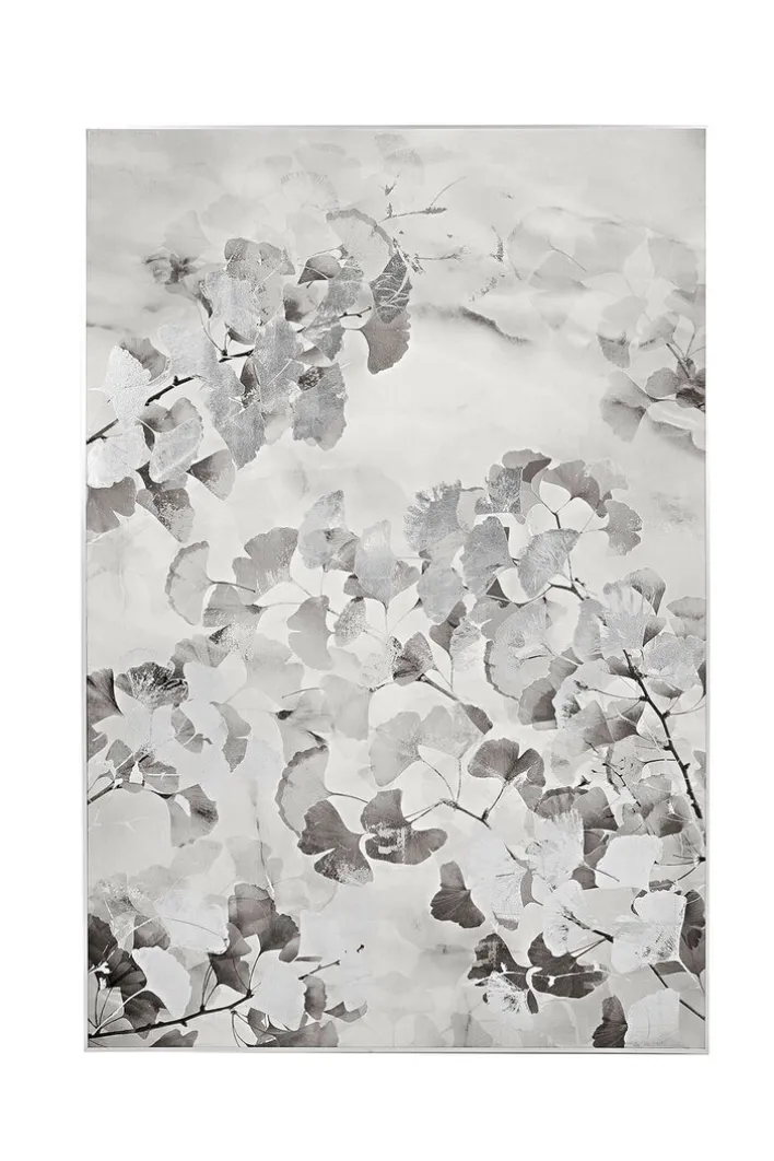 Die Fink Wanddeko DORICA ist aus silberfarbigem Aluminium gefertigt und hat eine Größe von 80 x 120 cm. Mit seinem außergewöhnlichen Design mit Hell-Dunkel-Kontrasten und stilvollen Grauschattierungen wirkt die Wanddekoration top modern, während die Ginkgo die Natur widerspiegeln. Veredelt ist die Wanddeko mit einem hochwertigen Aluminium-Rahmen. Die Wanddekoration ist ein eleganter Blickfang, der lange Freude bereitet und sich mit vielen Möbeln kombinieren lässt. Durch ihre edle Optik sorgt die Wanddeko zusätzlich für eine moderne Atmosphäre voller Eleganz.