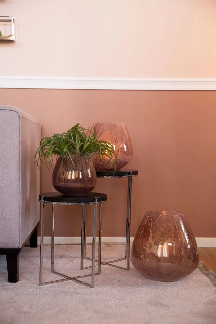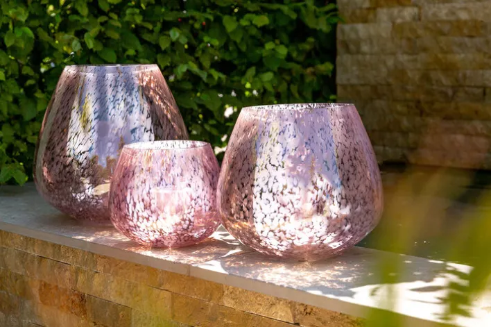 Das bauchige Fink Windlicht NICOLA besteht aus pastellig gefärbtem Glas und wird mit viel handwerklichem Geschick mundgeblasen. Ihren pudrigen Effekt verdankt der Glasbehälter einer speziellen Überfangtechnik. Das edle Design macht aus dem Windlicht eine abwechslungsreiche Frühlingsdekoration. Verwendbar ist es jedoch für jede Jahreszeit. Mit einer Höhe von 18 cm und 21,8 cm lässt sich das Tischlicht mit einer Stumpenkerze bestücken. Zudem sieht das Windlicht auch als Blumenvase wunderschön aus.