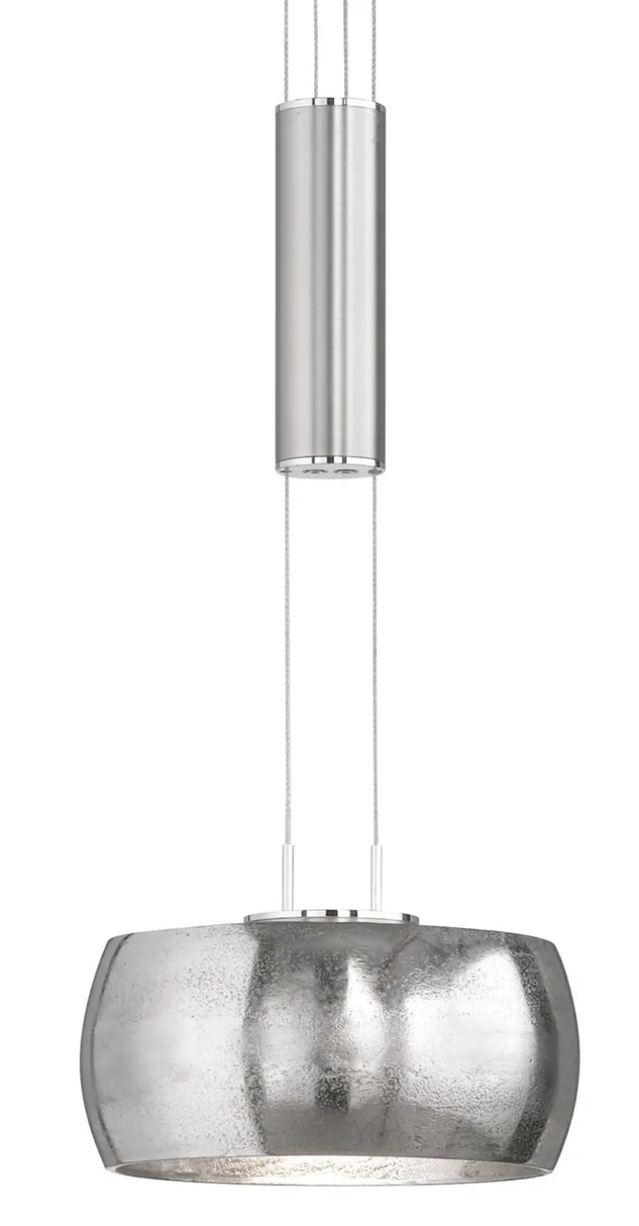 Die FISCHER & HONSEL LED Pendelleuchte COLETTE kombiniert einen schlichten Korpus mit einem nickelfarbigen Metallschirm in Antik-Optik mit 20 cm Durchmesser. Sie ist von 100 bis 160 cm in der Höhe verstellbar und ist mit einer fest eingebauten LED ausgestattet. Die dimmbare 9 Watt LED bietet eine Lichtleistung von maximal 950 Lumen und hat warmweiße 2700 Kelvin. Zudem überzeugt die LED mit einer langen Lebensdauer von bis zu 30.000 Stunden. Zum Dimmen der Pendellampe ist ein geeigneter Wanddimmer notwendig.