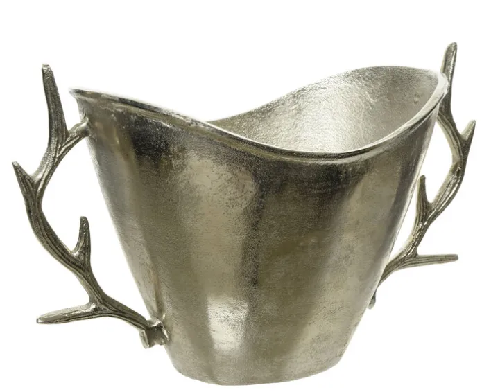 Der Flaschenkühler HIRSCH sorgt auf besonders originelle Weise dafür, dass Getränke wie Sekt, Wein oder Champagner die richtige Trinktemperatur behalten. Der silberfarbige Weinkühler aus hochwertig verarbeitetem Aluminium hat eine Höhe von 22 cm und ist 36 cm breit.