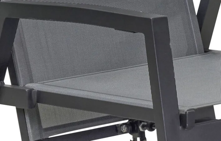 Dieser schicke Gartensessel aus grauem Aluminium wird praktischerweise mit einer Polsterauflage aus grauem Outdoorgewebe geliefert, sodass man sich gleich bequem hineinsetzen kann. Ebenfalls dem Komfort dienlich ist die Tatsache, dass es sich um einen Hochlehner handelt, der mit Armlehnen ausgestattet ist. Außerdem ist die Rückenlehne per Knopfdruck verstellbar; dadurch kann man verschiedene Sitzpositionen einnehmen, etwa zum Essen, Sonnen oder Lesen. Der Stuhl passt hervorragend zu einem ebenfalls grauen Tisch aus der gleichen Serie.