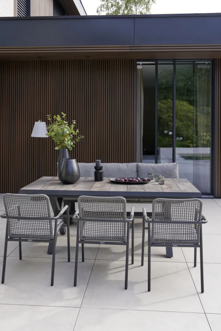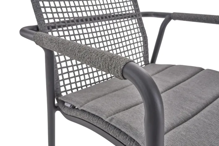 Der zweiteilige elegant-stylische REPTON ROPE Garten-Stapelstuhl von Garden FLAIR kommt in einem modernen und dennoch zeitlosen anthrazitfarbenen Metall-Gestell und einer hellgrauen Textilauflage. Das leichtgewichtige sowie stabile Modell überzeugt durch einen hohen Qualitätsstandard, komfortablen Armlehnen-Kordelung sowie ein luxuriös wirkendes Seilgeflecht.