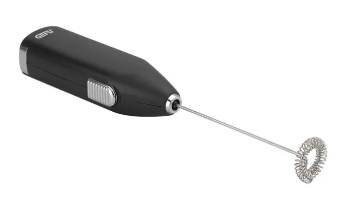 Einen Latte macchiato oder einen Cappuccino? Mit dem schwarz- und silberfarbigen Milchaufschäumer FINO von GEFU gelingt innerhalb von wenigen Sekunden ein perfekter Schaum mit warmer oder kalter Milch. Auch für Dressings, Cocktails oder Milchshakes ist der handliche Milchaufschäumer mit einer Drehzahl 12.000 U/min gut geeignet. Durch die weiche Soft-Touch-Oberfläche liegt der Milchaufschäumer gut in der Hand und ist im Nu unter klarem Wasser gereinigt.