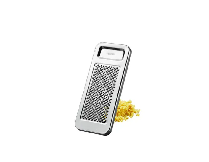 Mit einem kompakten Maß von 12,8 x 0,8 x 5,4 cm passt die GEFU Zitronen- und Gewürzreibe in jede Schublade oder an jede Hängeleiste. Denn wo fleißig gekocht und gebacken wird, darf dieser exzellente Küchenhelfer keinesfalls fehlen und sollte stets griffbereit sein. Die Reibe ist bestens zum Reiben von Zitronen, Orangen und anderen Gewürzen wie beispielsweise Knoblauch, Ingwer oder Muskatnuss geeignet. Sie besteht aus hochwertigem, rostfreiem Edelstahl und ist mit einer Griffmulde versehen. Das Reibbild ist langlebig und formstabil. Zudem ist die pflegeleichte Reibe spülmaschinengeeignet und säurebeständig.