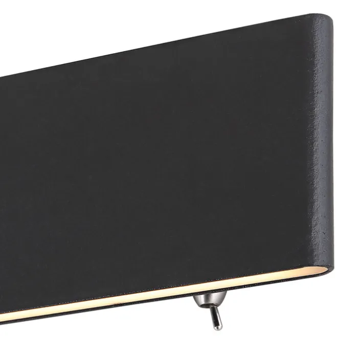 Gefertigt ist die Wandlampe aus Kunststoff und Metall. Ihr rechteckiger Schirm fällt mit der Farbkombination aus dunkelgrau und weiß ins Auge. Sie ist einflammig und mit technischen Raffinessen wie Up & Down Licht und einem praktischen Kippschalter ausgestattet. Bestückt wird sie mit fest eingebauten LED Leuchtmitteln, die bei einer Lichtleistung von 240 Lumen nur 8 Watt verbrauchen. Sie verfügt über eine Brenndauer von 20000 Stunden. Im Wohn- oder Schlafzimmer sorgt sie für angenehmes Licht.