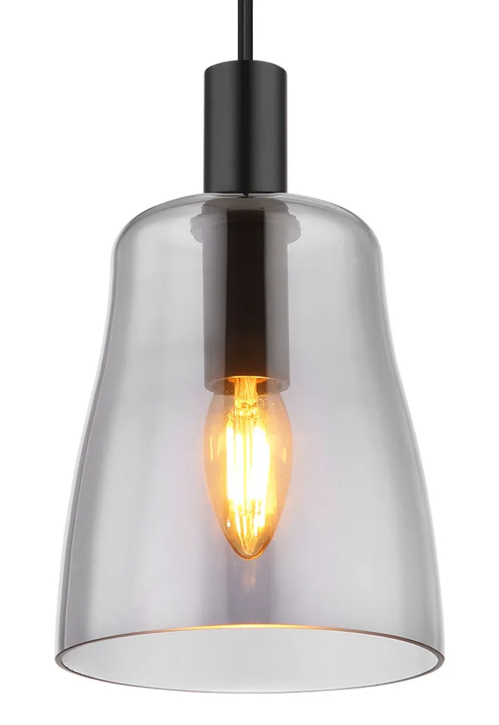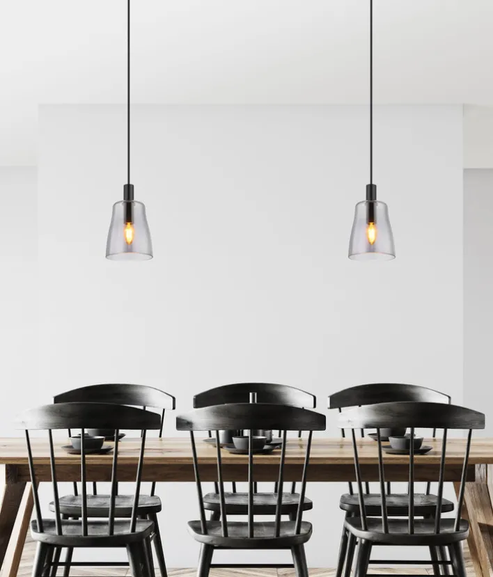 Die GLOBO Retrofit Pendelleuchte GARRI mit 120 cm Länge punktet durch ihr außergewöhnliches Design. Das schwarze Metall und das rauchfarbene Glas mit einem Durchmesser von 15 cm sind perfekt aufeinander abgestimmt.