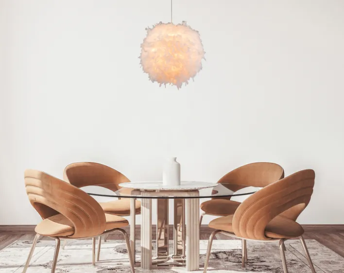 Die 1-flammige Retrofit Pendelleuchte KATUNGA von GLOBO hat einen Durchmesser von 60 cm und passt in moderne oder klassische Wohnbereiche. Durch den weißfarbigen Lampenschirm in einzigartiger Federoptik ist die Leuchte ein Blickfang für Kinder- oder Jugendzimmer und rundet die geschmackvolle Einrichtung ab. Die Pendelleuchte ist bei der Montage an der Decke einmalig in der Höhe einstellbar und sorgt für ein angenehmes Licht, das nicht blendet.