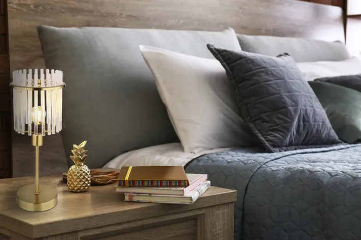 Die GLOBO Retrofit Tischlampe GORLEY mit einem Schirm aus Opalglasstäben überzeugt durch ihr elegantes Design und verleiht jeder Einrichtung einen luxuriösen Touch.