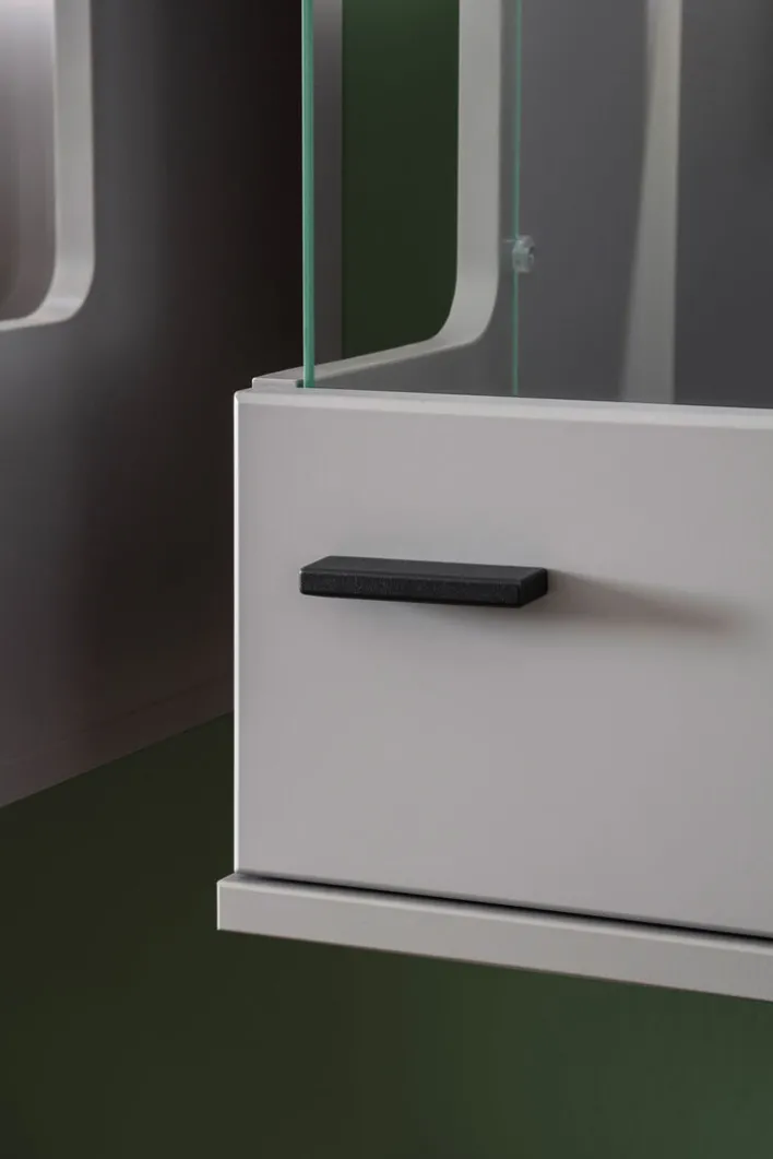 Die schöne Hängevitrine ist aus einem hochwertig verarbeiteten Holzwerkstoff gefertigt und mit Melaminharz beschichtet. Die Oberflächen sind kratz- und stoßfest. Die Glaseinsätze bestehen aus Klarglas. Die Beschläge und der Griff an der Front der Hängevitrine sind aus Metall hergestellt.