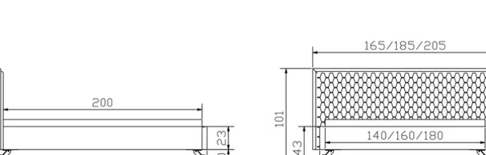 Breite: 165 cmHöhe: 101 cmLänge: 211 cmmaximale Belastbarkeit: 170 kgLiegefläche: 140 x 200 cmHöhe Kopfteil: 101 cm