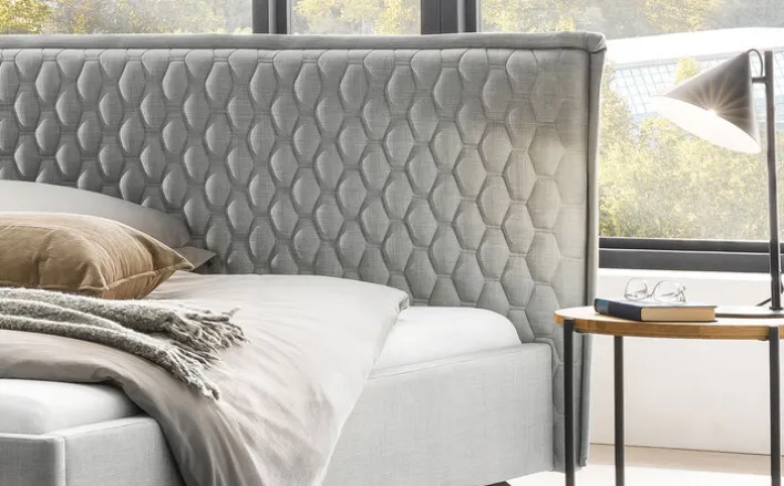 Fügt sich optimal im Schlaf- und Wohnbereich ein; das Bettgestell NARDO aus dem Hause HASENA. Mit einer Breite von 165 cm und einer Länge von 211 cm hat hier eine Matratze ausreichend Platz. Das Möbelstück besticht durch das ansprechende Design. Insbesondere das 101 cm hohe Kopfteil mit der gepolsterten Optik zieht die Blicke auf sich. Überzogen ist das Bettgestell mit dem Textilbezug pepe grey. Dieser besteht zu 100 Prozent aus Polyester.