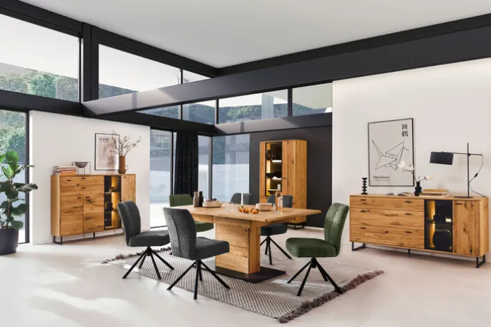AREZZO aus dem Hause zeichnet sich durch hochwertig verarbeitete, massive Fronten aus geölter Wildeiche aus und wurde mit stabilen, grauen Füßen aus Metall ausgestattet. Der Korpus ist furniert. Das elegante Highboard macht sich in jedem Raum gut: im Ess- und Wohnzimmer beispielsweise, aber auch im Arbeitszimmer, in der Diele und sogar im Schlafzimmer, wo es als Aufbewahrungsort für die verschiedensten Accessoires dient.