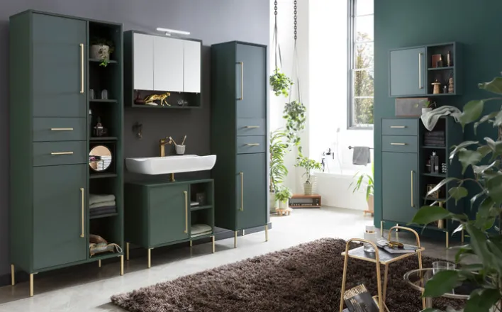 Der Hochschrank KENT hat ein Stellmaß von 67,1 x 184,3 x 33 cm (BxHxT). Er präsentiert sich in Korpus und Front in der harmonischen Dekorfarbe Waldgrün.