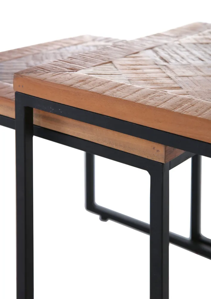 SIESTA ist ein topmoderner Beistelltisch im 2er Set, der durch die gekonnte Verknüpfung von Recycled Altholz und einem Fußgestell aus schwarz lackiertem Metall auffällt. Er lässt sich einzeln oder getrennt und sehr vielseitig nutzen.