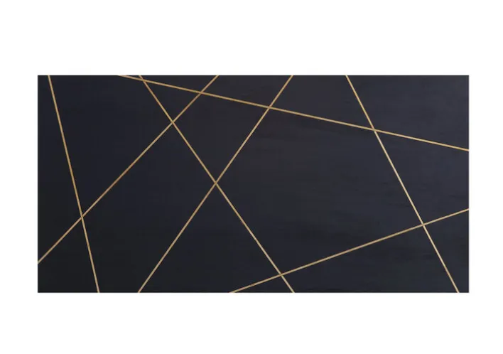 Der rechteckige Couchtisch LEVI von QUARTIER in Schwarz/Messing ist 120 cm lang, 60 cm breit und 46 cm hoch. Seine Tischplatte ist besteht aus massivem Mangoholz mit einer gebeizten, schwarz lackierten Oberfläche und Messingapplikationen. Die Tischplatte ruht auf einem filigranen Vierfußgestell aus messingfarbenem Metall.