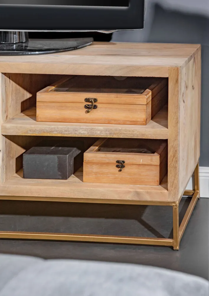 Das 130 x 55 cm große Lowboard BAHAR in Farbton Mango Natur besticht mit einer luftig-leichten Optik. Zudem bietet es viel Platz für Video- und Audiozubehör und bringt den Fernseher auf die perfekte Höhe.