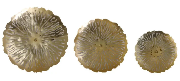 Das INTERhome Wanddekoration-Set MODA besteht aus 3 goldfarbigen Teilen. Diese besitzen die Durchmesser 30 cm, 38 cm und 45 cm.
