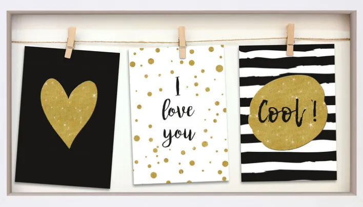 Der Collage Bilderrahmen BORNHOLM der Marke INTERTRADING ist aus beständigem Holz mit pflegeleichten Oberflächen in Weiß angefertigt. Mit den Abmessungen 24 x 43 Zentimeter stellt er Platz für drei Fotos im Format von jeweils 13 x 18 Zentimeter bereit. Der Rahmen für eine Collage eignet sich hervorragend als Geschenk, in neuwertigem Zustand sind die Plätze für Bilder mit in englisch beschrifteten Karten ausgestattet. Sie könnten den Collage Bilderrahmen beispielsweise für Erinnerungen an die Hochzeit, den Nachwuchs oder den Bau des Eigenheims nutzen. Grundsätzlich kann jedes Ereignis in Fotos festgehalten und in einer Collage verewigt werden. INTERTRADING bietet Ihnen den geeigneten Bilderrahmen aus Holz und Glas für jede Erinnerung, lassen Sie sich durch das Angebot in Ihrem porta! Online Shop inspirieren.