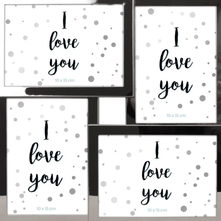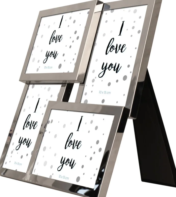 Gleich vier Bilder kommen im INTERTRADING Collage Bilderrahmen DALLAS zur Geltung. Gefertigt aus Metall in Silberfarbig und transparentem Glas, fügt sich der Bilderrahmen harmonisch in eine moderne Einrichtung ein.