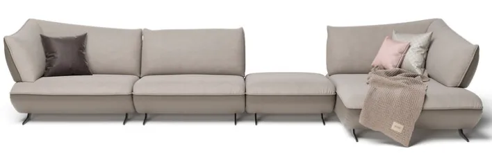 Das JOOP! Ecksofa besteht aus vier Elementen: einem 1-Sitzer, einem Zwischenelement, einem Element ohne Rücken und einer Abschlussrecamiere. Jedes Element ist zweifarbig mit einer hochwertigen Synthetikfaser bezogen. Zudem sorgt eine komfortable Polsterung mit Schaumstoffstäbchen und Faserflocken auch bei längerem Verweilen für einen exzellenten Sitzkomfort. Der Clou des Sofas ist allerdings die Sitztiefenverstellung, mit der sich die Tiefe perfekt an die persönlichen Bedürfnisse anpassen lässt.