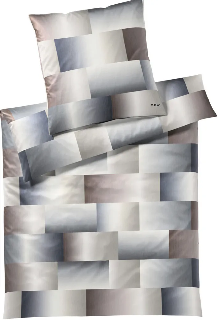 Die JOOP! Satin-Bettwäsche RANGE steht für beste Qualität aus Deutschland. Sie trägt ein grafisches Muster in den Farben Braun und Grau. Das textile Material besteht zu 100 % aus Baumwollsatin.