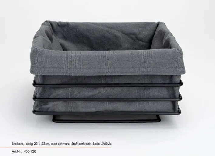 Der Brotkorb besteht aus einem schwarzen, pulverbeschichteten Metallgestell, das mit einem Textileinsatz ausgestattet ist. Dieser lässt sich bei Bedarf herausnehmen und reinigen. Die rechteckige Form lässt den Brotkorb klassisch und unaufdringlich wirken, sodass er in zahlreiche Einrichtungen integriert werden kann. Er eignet sich sowohl für den Einsatz im Alltag als auch für das schicke Sonntagsfrühstück. Für normales Brot, Brötchen oder Teilchen ist der stilvolle JUSTINUS Brotkorb LIFE gleichermaßen geeignet.
