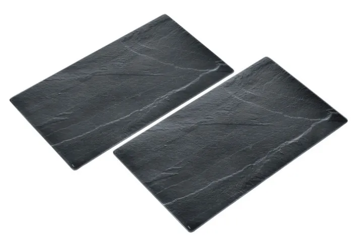 Schiefer-Arbeitsplatten in der Küche – wer wünscht sich das nicht? Der dunkle Stein mit der dezenten Äderung sieht einfach elegant aus. JUSTINUS hat hier ein 2-teiliges Set Herdabdeckpaltten aus grauem und schwarzem Glas im Sortiment, das wie Schieferplatten aussieht und aus Ihrem Herd eine schnittfeste und rutschfeste Arbeitsfläche macht. Die Platten können in der Spülmaschine gereinigt werden, die Größe von 30 cm x 52 cm lässt das gerade noch zu. Das schöne Schieferdesign ist 1 cm dick und hitzebeständig. Die Platten sind fast zu schade, um sie in der Küche zu verstecken!