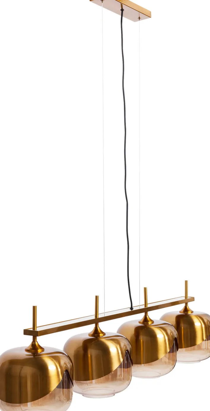 Mit der goldfarbigen KARE DESIGN Retrofit Hängelampe GLOBLET QUATTRO kommt eine imposante Beleuchtung über Ess- und Wohnzimmertisch, die den Tisch gut ausleuchtet und auch optisch viel zu bieten hat.