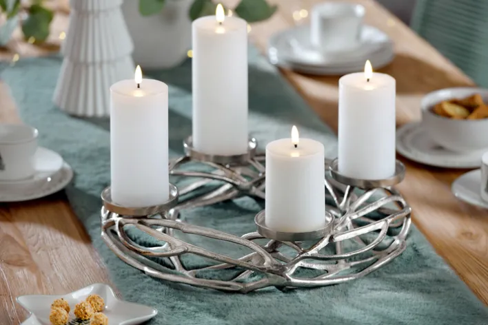 Das fragil wirkende Design des Kerzenleuchters wird durch das helle Silbergrau noch betont. Es verleiht dem Kerzenleuchter Ringval eine wundervolle Leichtigkeit, die ebenso gut in ein klassisches wie in ein modernes Ambiente passt. Die feinen Streben lassen an ineinander verflochtene Äste denken und wirken herrlich natürlich und sehr elegant. Gleichzeitig bietet es die Möglichkeit, den Kerzenleuchter Ringval nach dem eigenen Geschmack noch weiter zu dekorieren. Des Weiteren passt die Farbe zu allen anderen weihnachtlichen Designs. Ob einzeln oder als Teil der Dekoration: Der Kerzenleuchter Ringval ist einfach schön.