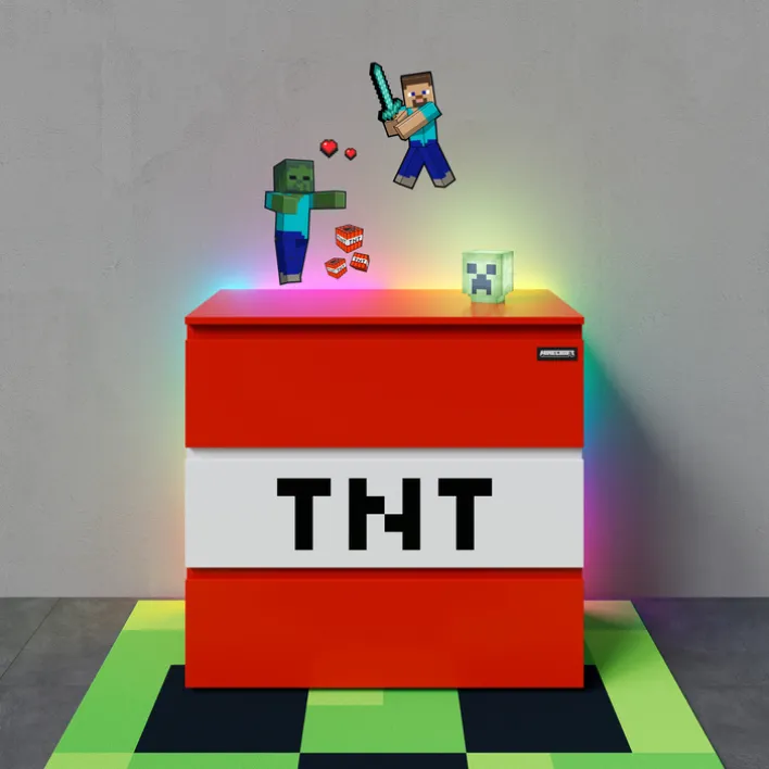 Die Kinder-Kommode MINECRAFT 80 cm rot/ weiß/ schwarz ist eine praktische, mit LED-Beleuchtung ausgestattete Schubkastenkommode. Durch die Fertigung aus melaminbeschichteter MDF ist die 80 x 77,1 x 41,5 cm große Kommode stabil und kratzfest.