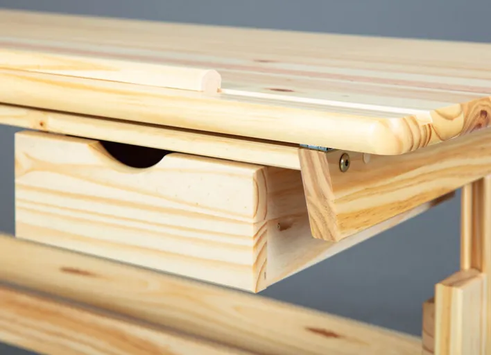 Für die lieben Kleinen ist der Schreibtisch CHRISTIAN ideal. Das strapazierfähige Möbelstück aus Kiefer Natur misst 109 x 55 x 63 cm und besticht durch eine attraktive braune Farbgebung. Dank seiner Ausladung von 55 cm ist ein hoher Nutzerkomfort gewährleistet. Für noch mehr Bequemlichkeit und maximale Flexibilität ist der massive Kinder Schreibtisch in der Höhe verstellbar. Ein Schubfach ist inkludiert und bietet Kindern und Jugendlichen zusätzlichen Stauraum. Sicherlich lässt sich dieses Schubfach auch als Geheimversteck nutzen.
