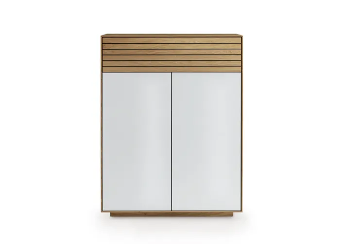 Farbe: BraunWeißFarbton: Türen Glas weiss satinato/Astige Eiche massiv, naturbelassen geöltHauptfarbe: Weiß