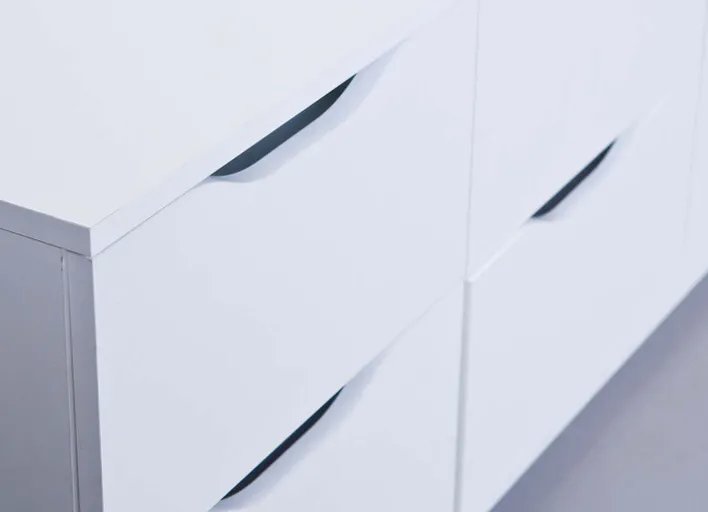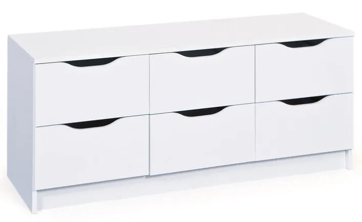 Die Kommode NOAH 6-B kann in jedem Raum der Wohnung Verwendung finden. In ansprechendem Weiß passt sie in Schlaf-, Ess- oder Wohnzimmer, in Büro oder Diele. Sechs Schubladen laden ein zum Aufbewahren und Ordnung halten. Die aparten Grifföffnungen der Schubladen verleihen ihr eine freundliche Ausstrahlung.