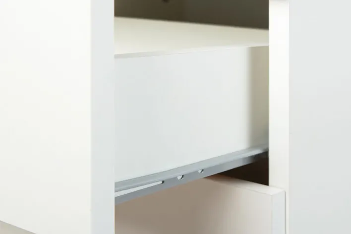 Die Kommode NOAH 8-H in Weiß erstrahlt in einem modernen Look, der dem Wohnraum eine einladende Atmosphäre verleiht. Gleichzeitig zaubert die Schubladenkommode viel Stauraum in das Zimmer.