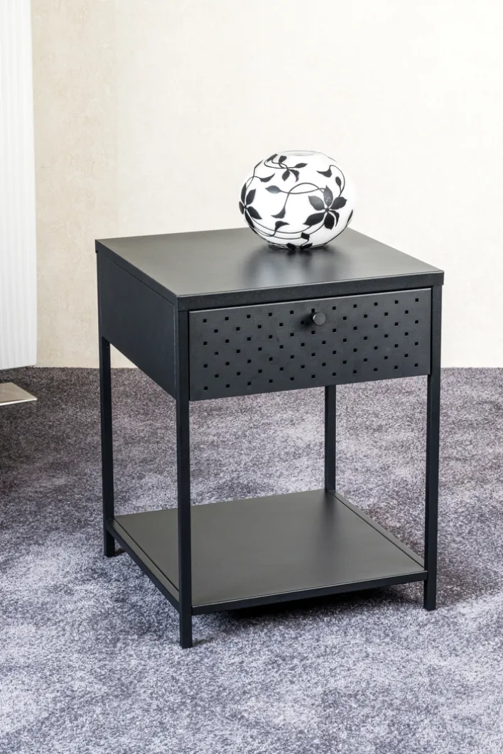 Mit einem Schubkasten mit Vollauszug und zwei Ablagen bietet die Konsole Stauraum und Abstellflächen für Bücher, Dekor oder andere Gegenstände. Die Schublade verfügt über ausreichend Platz für kleinere Utensilien oder persönliche Dinge. Diese Konsole ist ideal als Beistelltisch neben der Couch im Wohnzimmer, als praktischer Nachttisch im Schlafzimmer oder als dekoratives Möbelstück im Flur, um Schlüssel und Accessoires ordentlich zu verstauen.